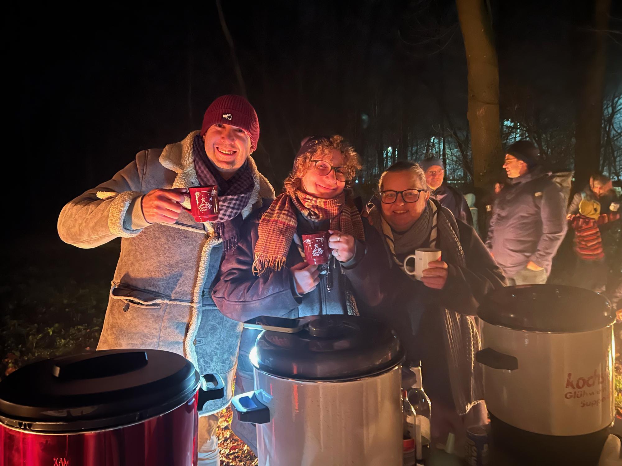 In gemütlicher Stimmung wanderte die Gruppe von der Endstation Neuwaldegg bis zum Parapluieteich am Ende der Allee. Dort legten in feierlichem Rahmen zwei Späher ihr Versprechen ab und bekamen das Halstuch verliehen. Danach gab es guten Punsch & Tee zum Aufwärmen und es wurde gemeinsam auf die Weihnachtszeit angestoßen.