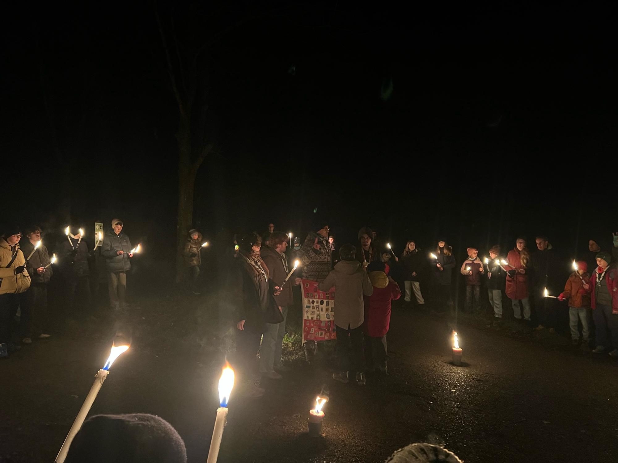 Diesen Dezember fand die alljährliche Fackelwanderung in ganz großem Rahmen statt. Die ganze Gruppe 29, von WiWö bis RaRo und deren Geschwister und Eltern wanderten mit leuchtenden Fackeln durch die Schwarzenbergallee.